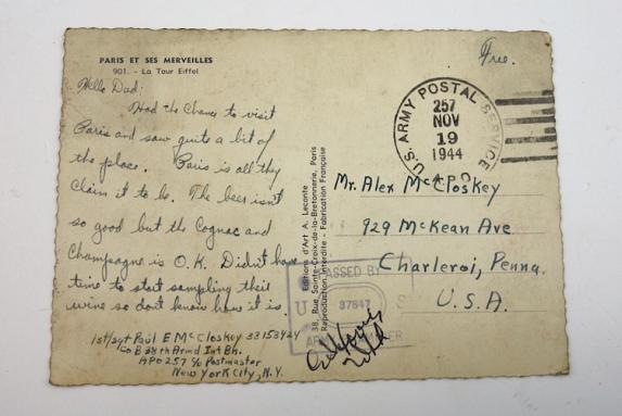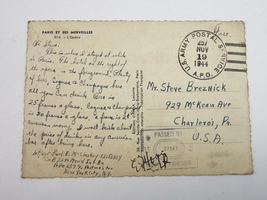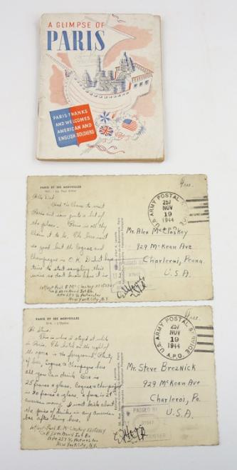 Comes with two “Paris” postcards, send home by a US GI during hid visit of the city of “Paris”