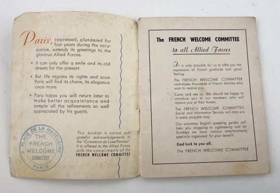 Nice pocket booklet with “Paris” city map and Information for the Allied troops visiting “Paris”