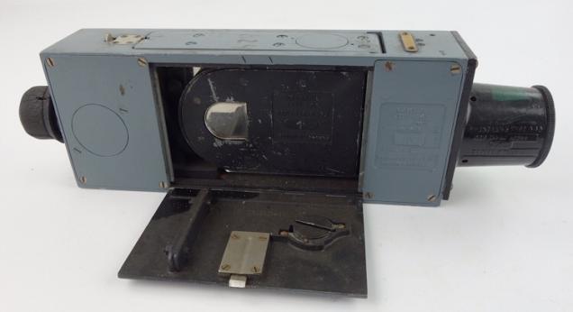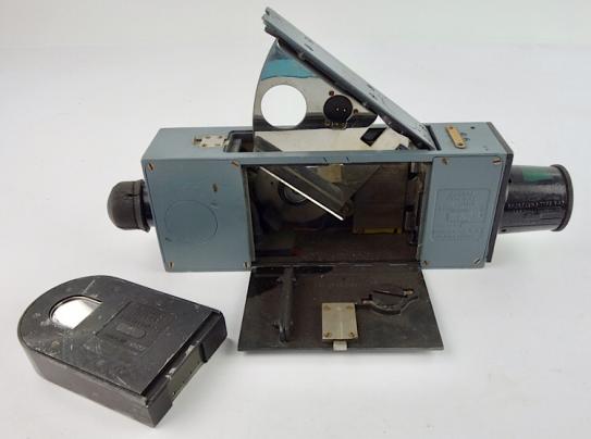 Very nice British (RAF) “Royal Air Force” G45 Gun Camera, which was used to film the kil of an enemy airplane. The camera started to film at the same time automaticly as the Spitfire pilot used the fire button.