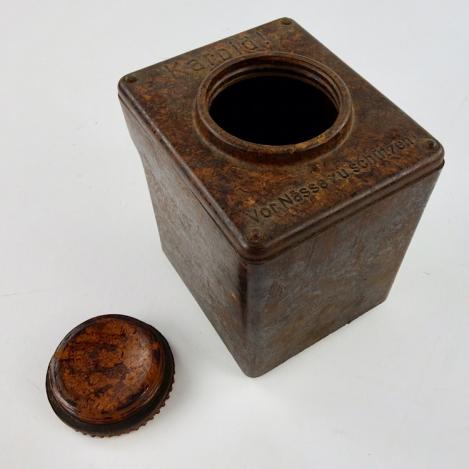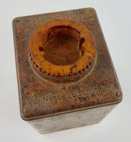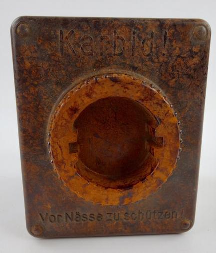 Wehrmacht Bakelite Carbit Box Very nice bakelite made “Carbit” box “Carbit” was used for the Wehrmacht Infantery lantern. In very good condition.