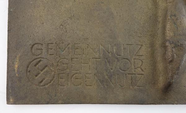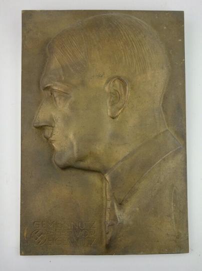 Brass Adolf Hitler Plaque Nice big and heavy brass “Adolf Hitler” plaque “Gemeinnutz geht vor Eigennutz” size about 50 cm high and about 35/40 cm weight In very good condition.