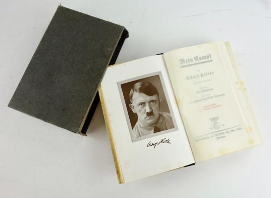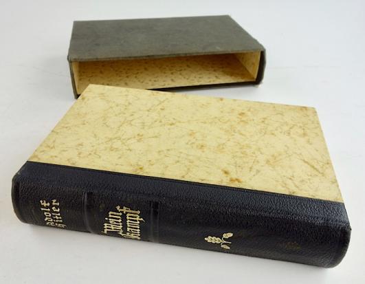 Mein Kampf (Mariage Version) Nice used Mein Kampf, Adolf Hitlers book. This is a mariage version, dated “1938” which was given by the mayor to married couple’s as a present. In used but very good condition.