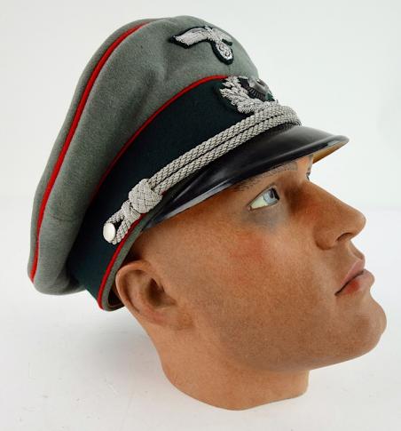 Very nice sadle shape Wehrmacht Artillery officers visor cap with nice embroided insignia and in very good mannequin size! No moth or other damage.