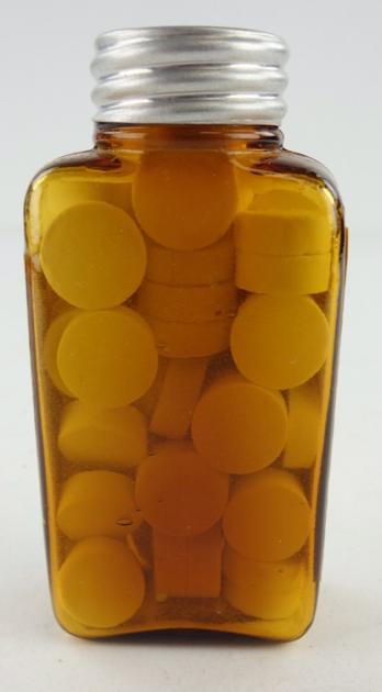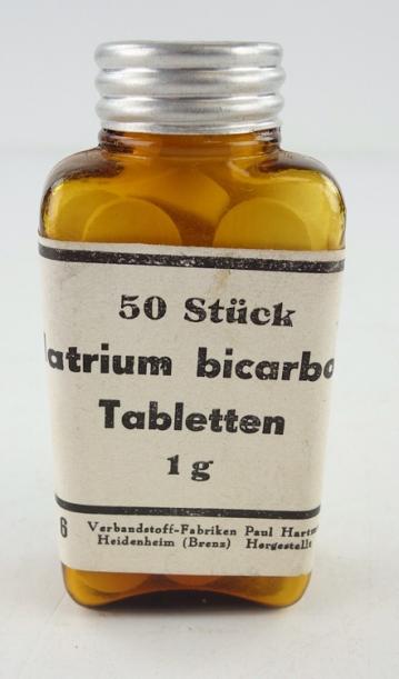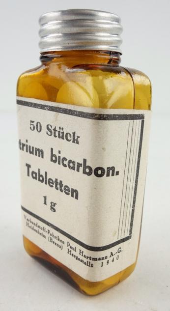 Wehrmacht Medical Department Medicine Bottle “Natrium Bicarbon” tablets. dated “1940” made by “Paul Hartmann A.G., Heidenheim” with content. In very good condition.