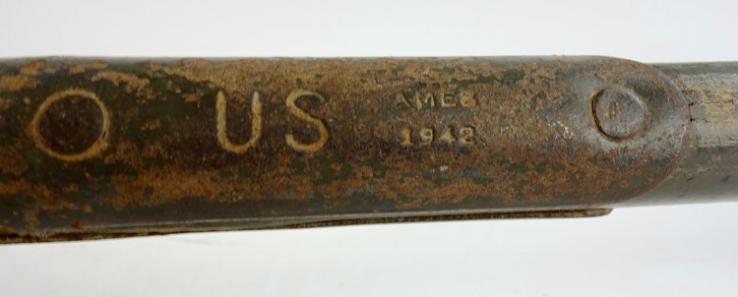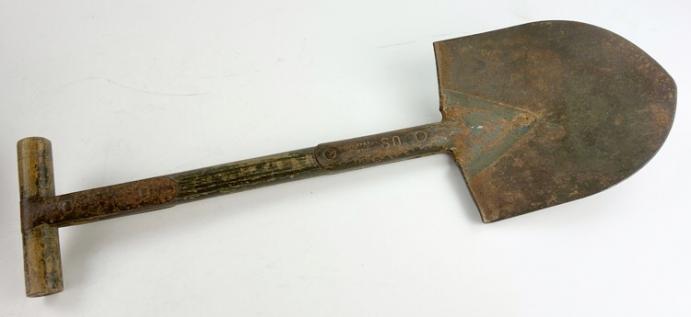 US WW2 T Shovel Very nice used US WW2 T shovel. Nicely maker marked “Ames” and dated “1942” In used but very good condition.