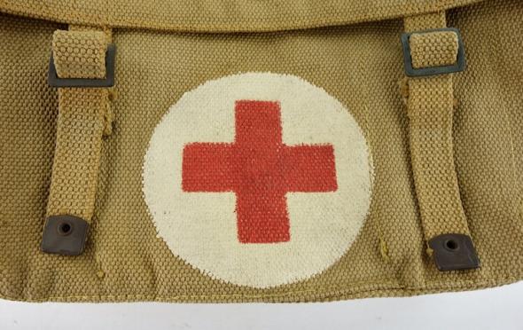 Britse WW2 Medic Bag Mint British WW2 medic bag for bandages, medicine and medical tools. Nicely dated “1943” Impossible to update!!!