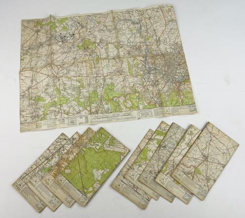 10 US WW2 Roadmaps France/Belgium Very nice complete set of 10 US WW2 roadmaps wich are together complete France/Belgium. Compiled and drawn by O.S. 1938. Revised 1943. In used but very good condition.