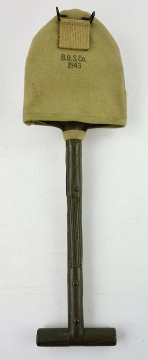 US WW2 T Shovel in original cover Very good US WW2 T shovel with canvas cover, nicely maker marked “B.B.S.Co” dated “1943” The mint shovel is US marked Both in mint condition.