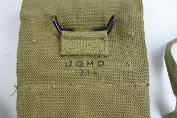 US WW2 Hand Grenade Pouch Mint US WW2 hand grenade pouch, which would hold 3 US WW2 pineapple hand grenades. Nicely maker marked “J.Q.M.D.” and dated “1944” Impossible to upgrade!!!