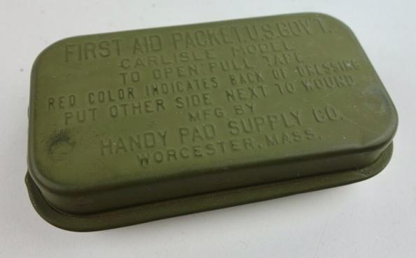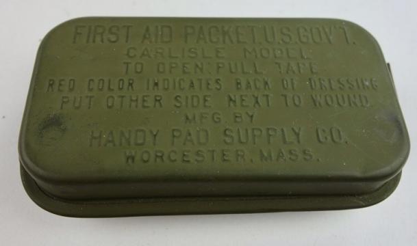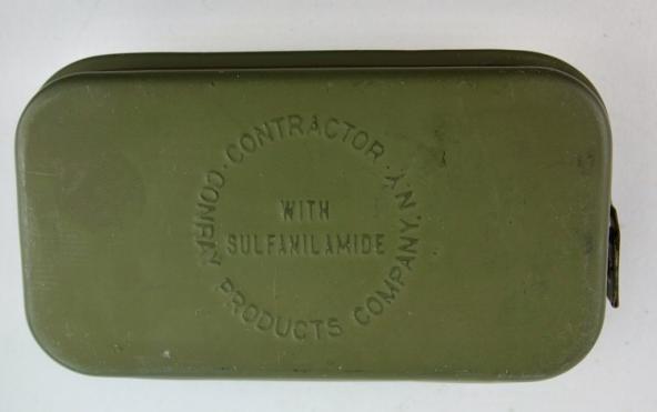 US WW2 First Aid Kit Mint US WW2 first aid kit. Metal can with wound bandage and “Sulfamilamide” to stop bleeding. Made by “Conway Products Company N.Y. USA” in mint condition.