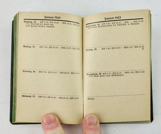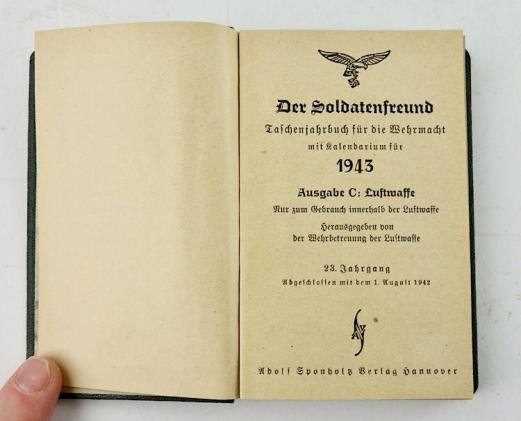 Luftwaffe Pocket Agenda Very nice Luftwaffe pocket agenda "Der Soldaten Freund" dated "1943" with lots of very nice rank insignia drawings. In very good condition.