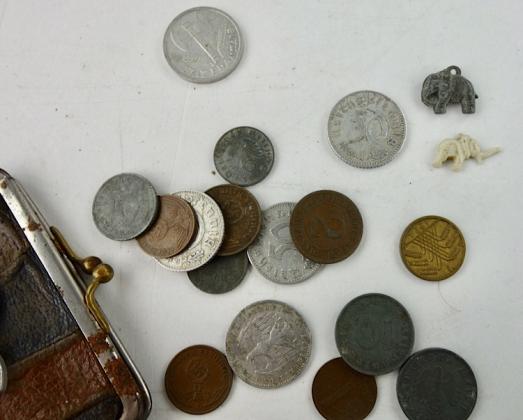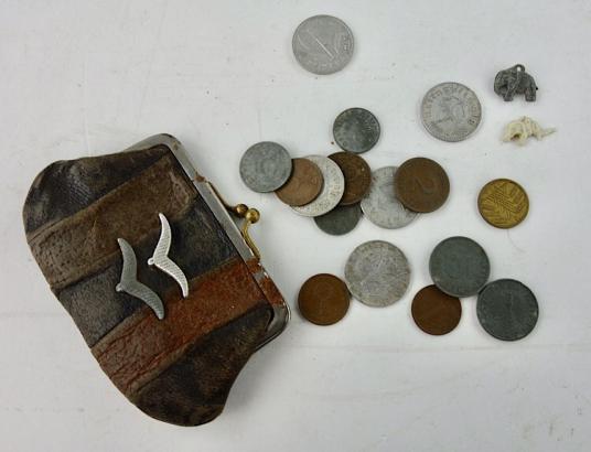 Very nice small Luftwaffe wallet with coins and lucky charms (2 elefants, for good luck) comming from a former Fallschirmjäger. In used but good condition.