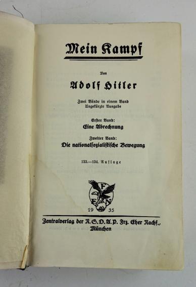 Mein Kampf 1935 Nice used and very early dated “1935” “Adolf Hitlers” Mein Kampf. For historical purposes only. Impossible to upgrade!