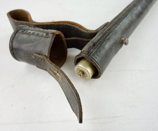 Very nice Wehrmacht flute in its original leather case, which could be worn on the belt.