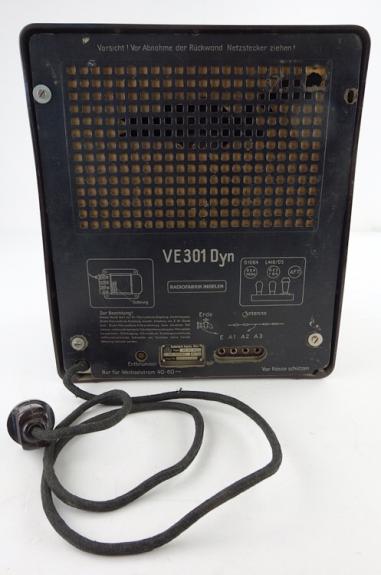 Volks Empfänger Radio VE 301 (People’s Radio)Bakelite in very good condition, original cartboard backplate and cable. Overal a very nice radio in very good and very original condition.
