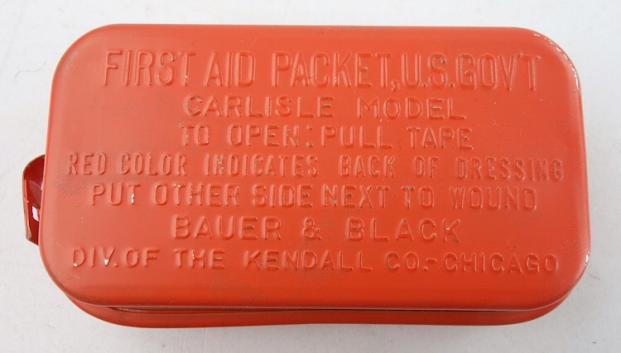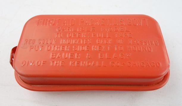 Metal can with wound bandage but without “Sulfamilamide” to stop bleeding.