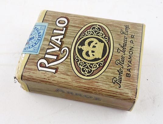 US WW2 Rivalo Cigarettes Nice package wth content, US 20 class A cigarettes. “Puerto Rico Tobacco Company” Nice full package in good condition.