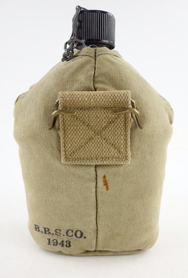 US WW2 Canteen Used US WW2 canteen, cover nicely marked “U.S. B.B.S.Co.” and dated “1943” with cup. Overal a nice used canteen in very good condition