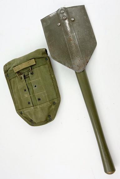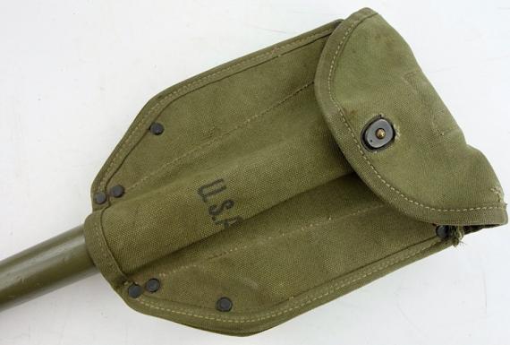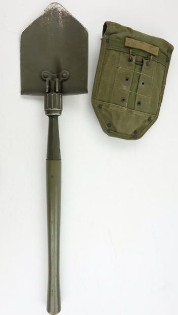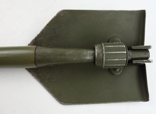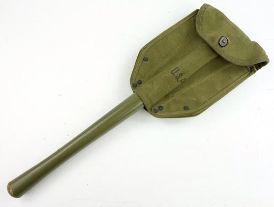 US WW2 Folding Shovel Very nice condition, US WW2 folding shovel. Maker marked and dated “1944” In 98% of its original olive drap camo paint in early model shovel cover. In very good condition.