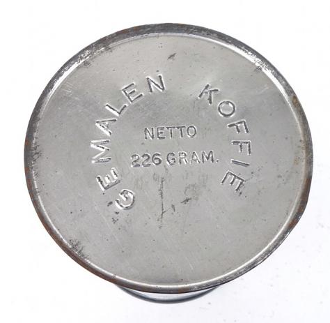 But on top with text “Gemalen Koffie” so the cans must be made for the food aid droppings above the North of Holland during the hunger winter! Nice can in very good condition.