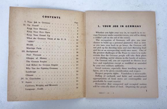 US WW2 Pocket Book Information about Germany Very nice US WW2 pocket book with information about Germany. Dated “1944” In very good condition.