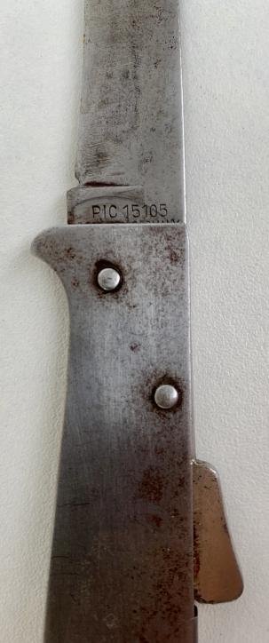 Marked “PIC 15105”, Solingen Germany, very nice made lock knife. For personell use. To cut an apple or open field rations. In used but very good condition.