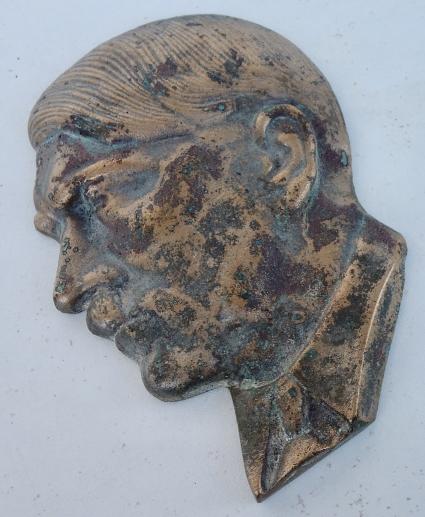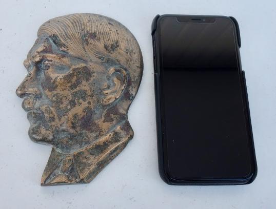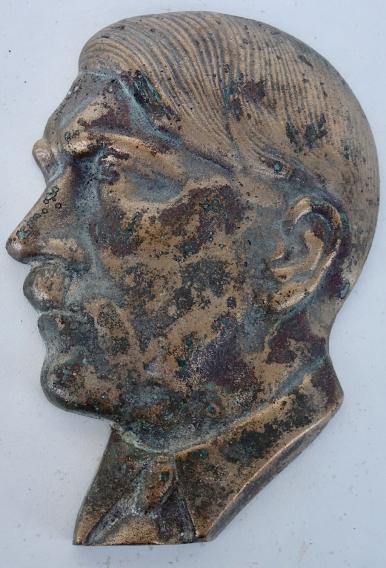 Adolf Hitler Plaque Nice messing made small Adolf Hitler plaque. In used but good condition.