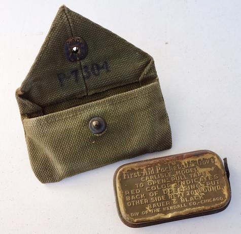 Very nice mint US WW2 first aid pouch with firts-aid badage kit "Carlisle" first model (Green )