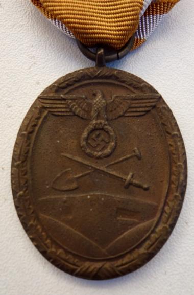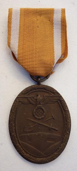 Schutzenwall Ehren Abzeichen Westwall Medal Very nice westwall medal with original ribbon. In its original carton pouch. In very good condition.