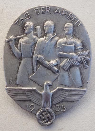 Third Reich Labour Day Badge “Tag der Arbeid, 1935” Made by “J. Dinnenbier Nachf., Lüdenscheid” Nice made badge in very good condition.