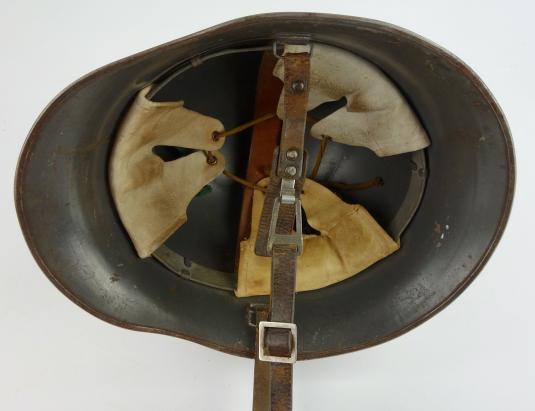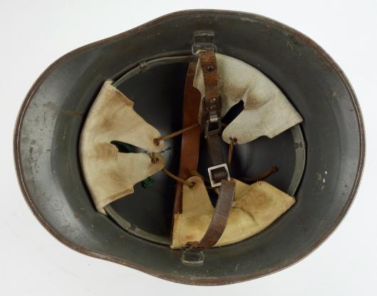 In 95% of its original camo paint and complete with its original liner and leather combat helmet strap.