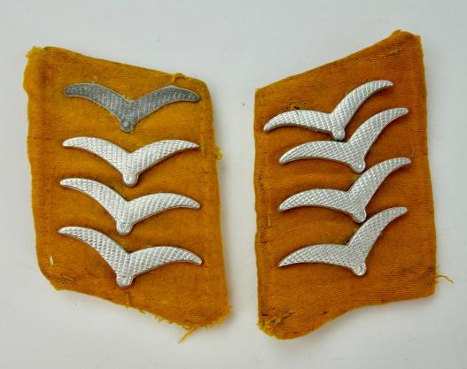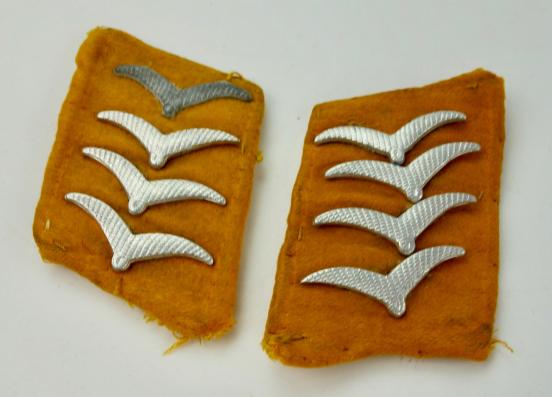 Nice Salty Luftwaffe Collar Tabs Uniform removed pair of Luftwaffe collar tabs Used by “Fallschirmjägers, Air Crew’s and Luftwaffe ground units” in nice salty condition.