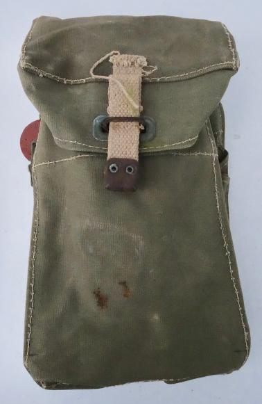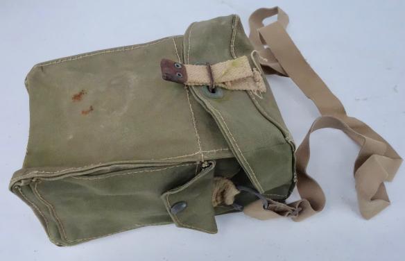 Nice used second model British light weight assault gasmask bag. With British dog-tag.