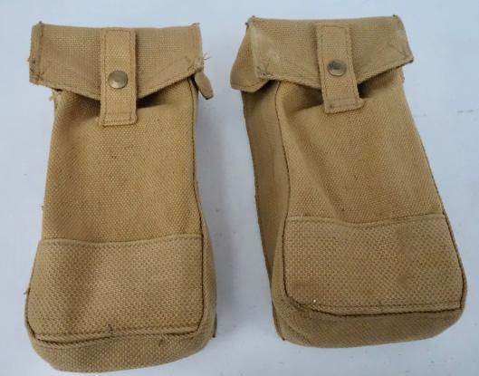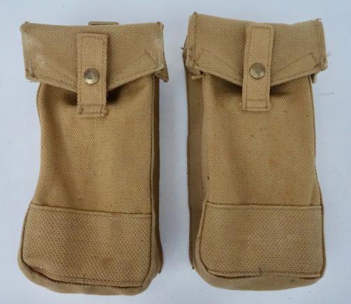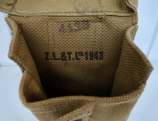 Near mint pair of Canadian WW2 basic ammo pouches. Both maker marked “Z.L.&T. Ltd.” Dated “1943” and Canadian “Broad Arrow” stamp.