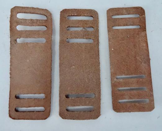 Mint un-issued set of three re-enforcemend leathers for Wehrmacht gasmask cannisters straps.