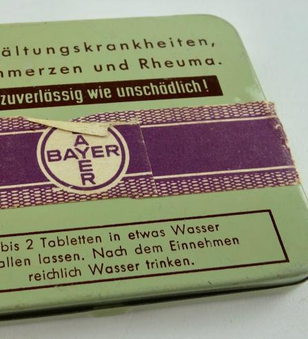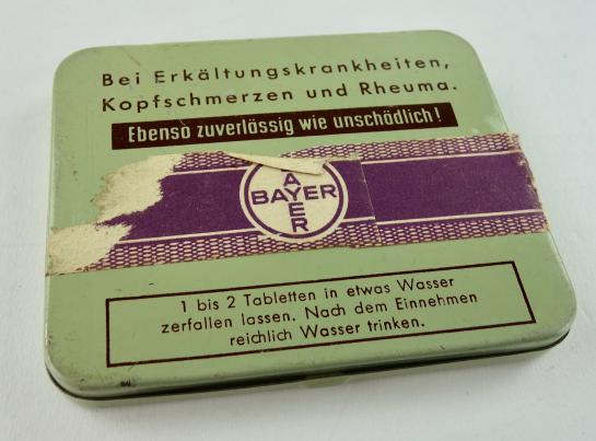 Wehrmacht Headache Tablets Very nice metal package of headache tablets without content. Made by the "Bayer" company In very good condition.