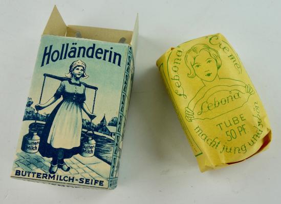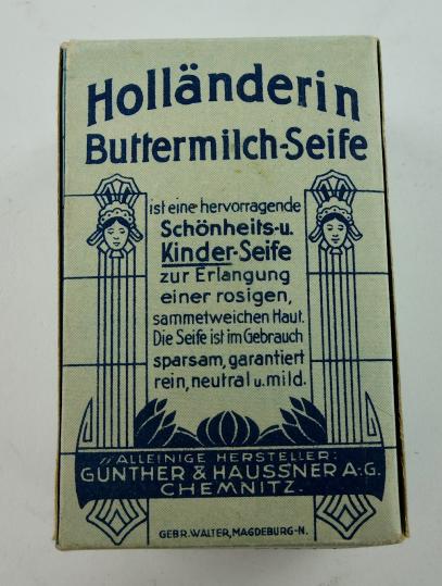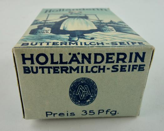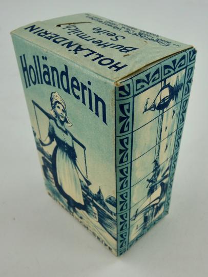 Very nice decorative carton box with content of Third Reich era soap. “Holländerin Buttermilch Seife”