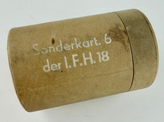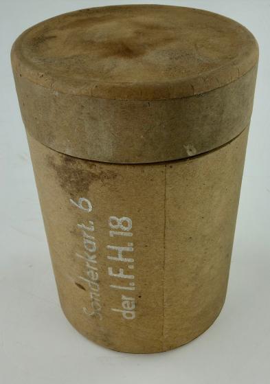 Wehrmacht L.F.H.18 Kartous Transport Container Very nice near mint, carton Wehrmacht L.F.H.18 Kartoes transport container. “Sonder Kart 6 der L.F.H.18” Very nice container, nice for display!