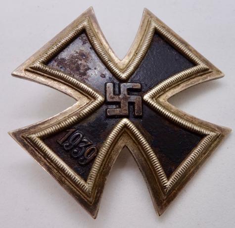 Iron Cross First Class 1939 Very nice used and marked Iron Cross first class "1939" un-marked with steel core. Nice Iron Cross first class with a nice patina. Overal a very nice Iron Cross.