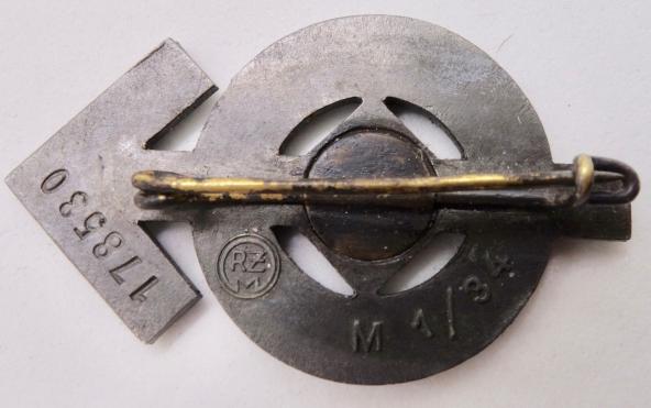 Very nice metal numbered badge Hitler-Jugend "Leistungen in der H-J" “RZM M1/34” marked which is “Karl Wurster, Markneukirchen” and numberd “178530” In very good condition.