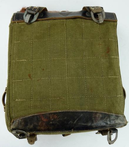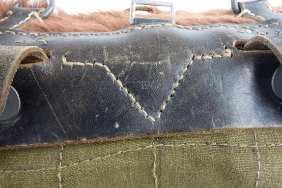 Complete with its original short leather straps to connect the backpack to the combat “Y” straps