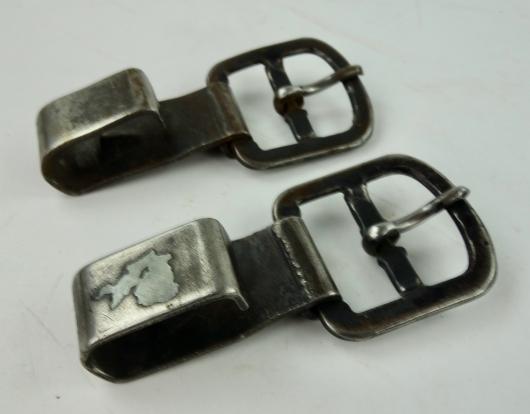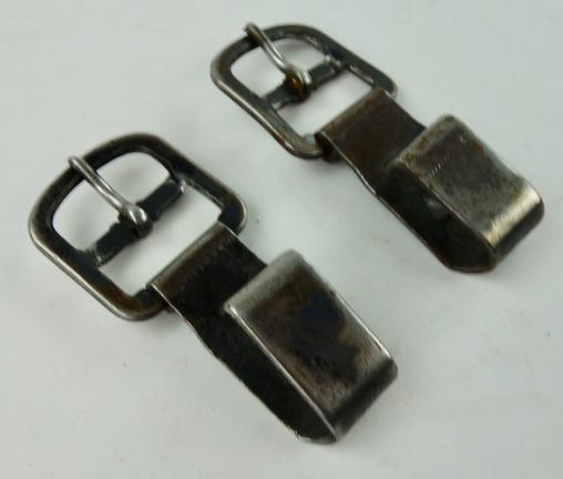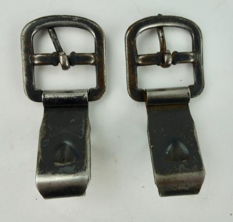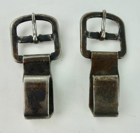 Wehrmacht metal Y Strap (Ammo Pouch) Hooks Fantastic to complete a Wehrmacht combat “Y” strap Or replace a broken hook. In used but good condition.