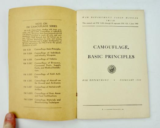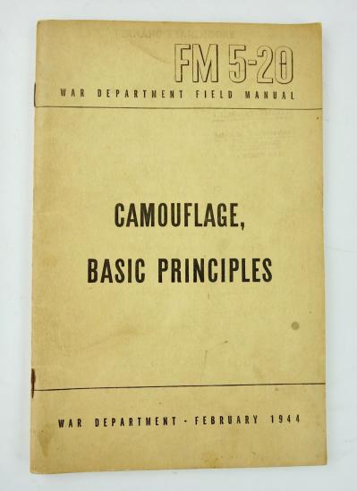 US WW2 Field Manual FM 5-20 Camouflage Nice US WW2 field manual. “Camouflage Basic Principles” Dated “1944” in very good condition.