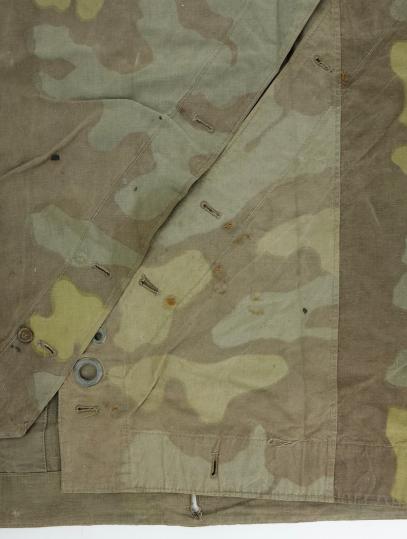 Late war German made, Wehrmacht/WaffenSS Italian “M29 Tele Mimetico” camo cloth shelter quarter.