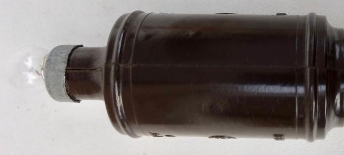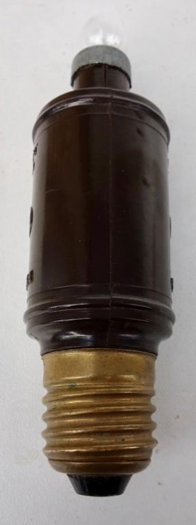 Very nice bakelite made Dutch wartime light bulb converter. To make a tinny light bulb fit in a regular lamp. In very good condition. Used in occupied Holland to safe and replace regular big light bulbs.