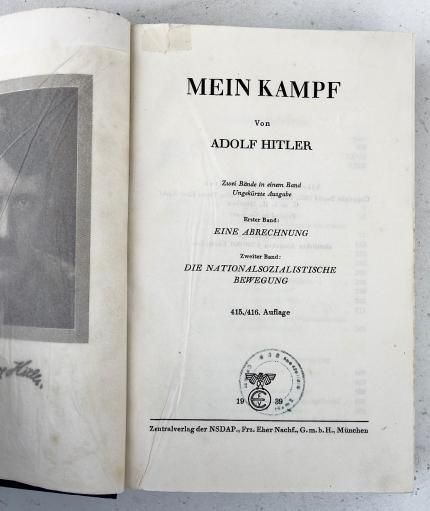 Mein Kampf 1939 Near mint “Adolf Hitlers” Mein Kampf, dated “1939” For historical purposes only. In very good condition.