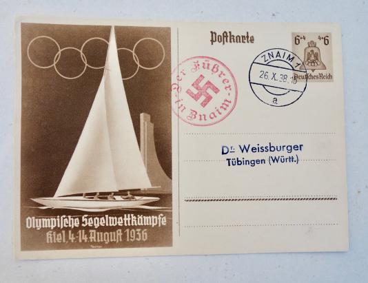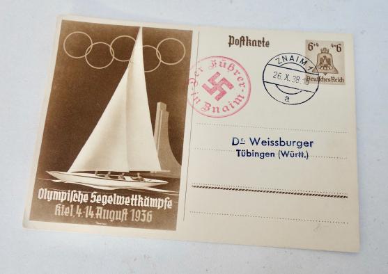 Early Third Reich Postcard Olympic Games 1936 Very nice early Third Reich postcard, dated “1936” “Olympische Segelwettkämpfe Kiel, 4-14 August 1936” in very good condition.