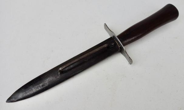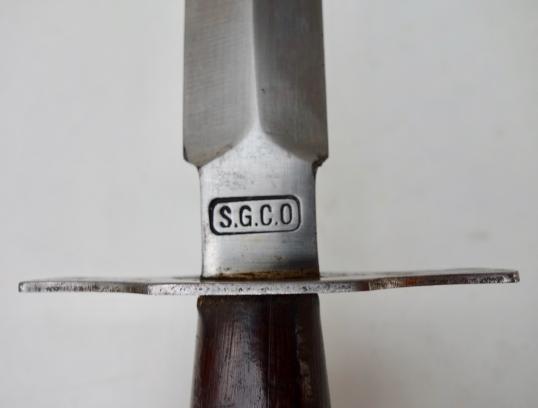 French Combat Knife Very nice French WW1/WW2 combat fighting knife. Marked “S.G.C.O” in its original steel scabbard. Wonderful combat knife in very good condition.