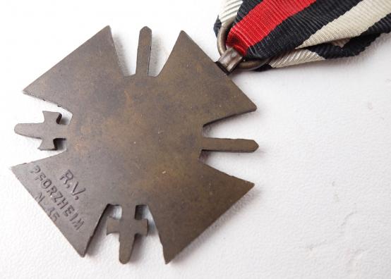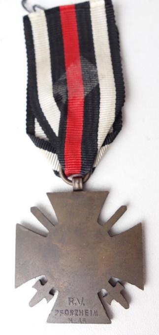 German WW1 Remembrance Cross 1914-1918 Very nice maker marked German WW1 remembrance cross 1914-1918. “R.V. Pforzheim” Nice cross with its original ribbon. In very good condition.