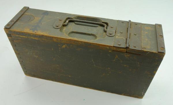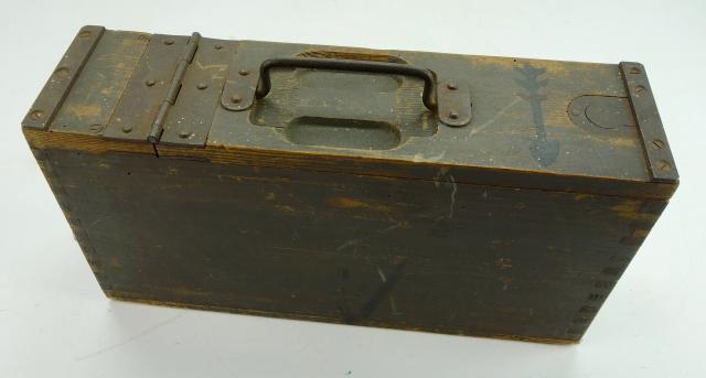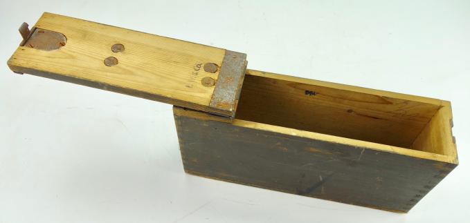 Dutch wooden Ammo Case Very nice wooden Dutch ammo case in its original paint and maker marking. Used for “Vickers, Machinegun” ammo. In very good condition.